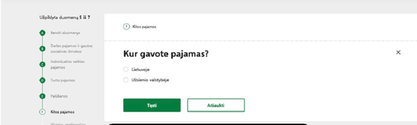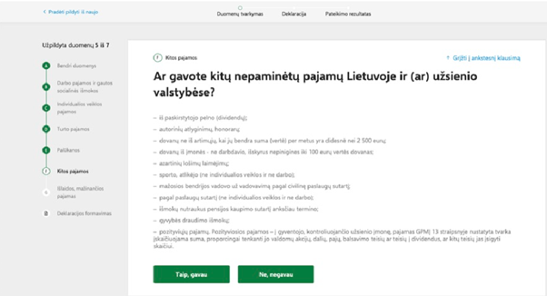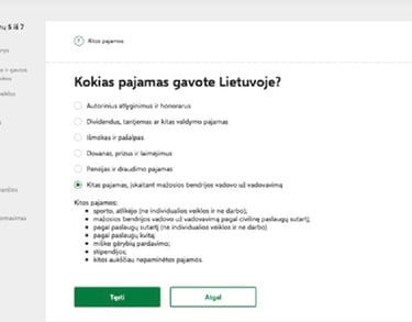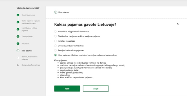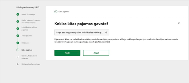 7. Kitame žingsnyje rinkitės „Kitas pajamas įskaitant mažosios bendri...“ ir spauskite „Tęsti“: