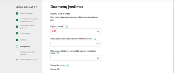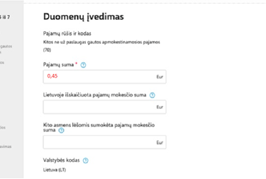 9. Kitame žingsnyje įveskite sumą, kurią rasite DennyTips sistemoje, skiltyje „Taxes“ ties „Income“ skiltimi (žiūrėti 1 punktą).