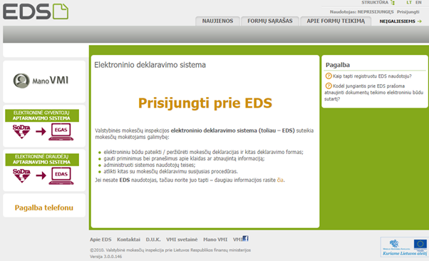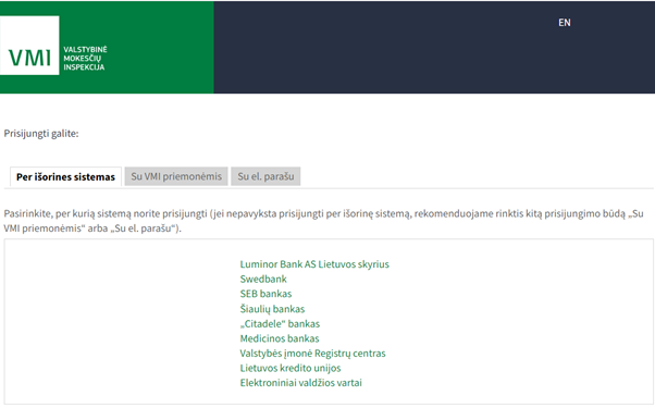 3. Prisijunkite prie VMI Elektroninės deklaravimo sistemos: